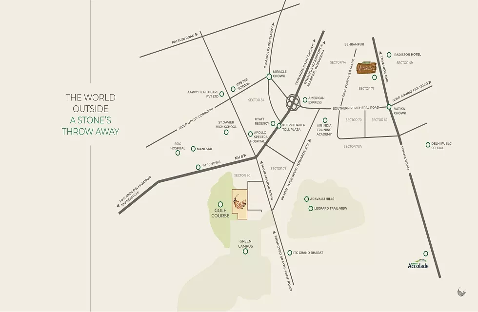 This project location has direct connectivity from NH-8 via the 60-meter wide Naurangpur Road. In Sector 80, HSIDC auctioned lands where other developers like Eldeco, Conscient, and Ashiana have also purchased plots and launched their residential projects. HSIDC has already dedicated areas for schools, hospitals, clubs, and sports complexes in Sector 80, It will going to be one of the best sectors because it is the lowest density sector in Gurgaon and is being developed by HSIDC, ensuring everything is well-planned. It is a prime location for investment